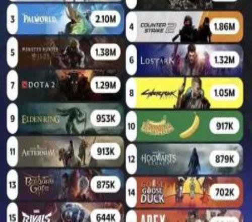 体育资讯10月01日称 据外媒公布的数据显示,目前Steam平台所有游戏同时在线人数榜单情况如下。