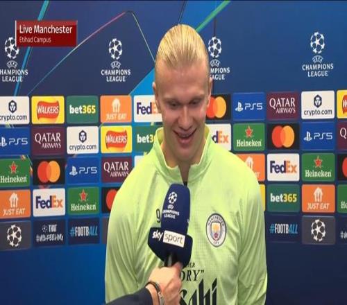 在欧冠联赛阶段第4轮主场迎战多特蒙德的比赛前夕,曼城前锋哈兰德接受了来自意大利天空体育的采访。